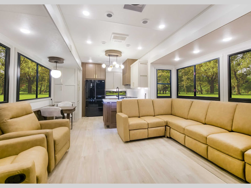 Dutchmen Denali fifth wheel 366RK highlights: Rear Kitchen Theater Seating ... more about Denali 366RK