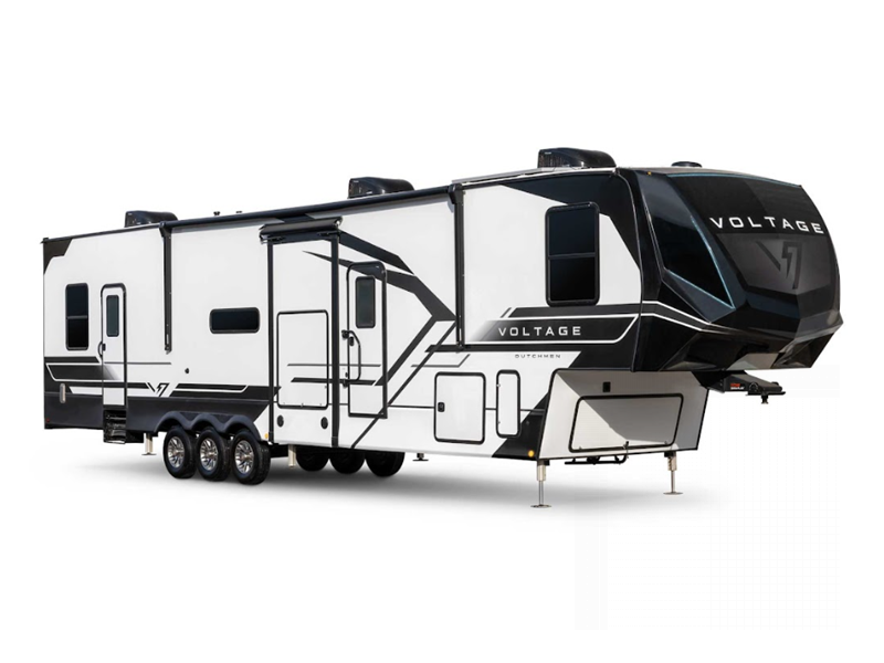 The Voltage Triton toy hauler fifth wheels by Dutchmen RV feature luxury amenities and quality craftsmanship to make each journey one to remember. You will be impressed by the upgraded residential furniture and king-size bed on all the floorplans, plus many exterior conveniences.