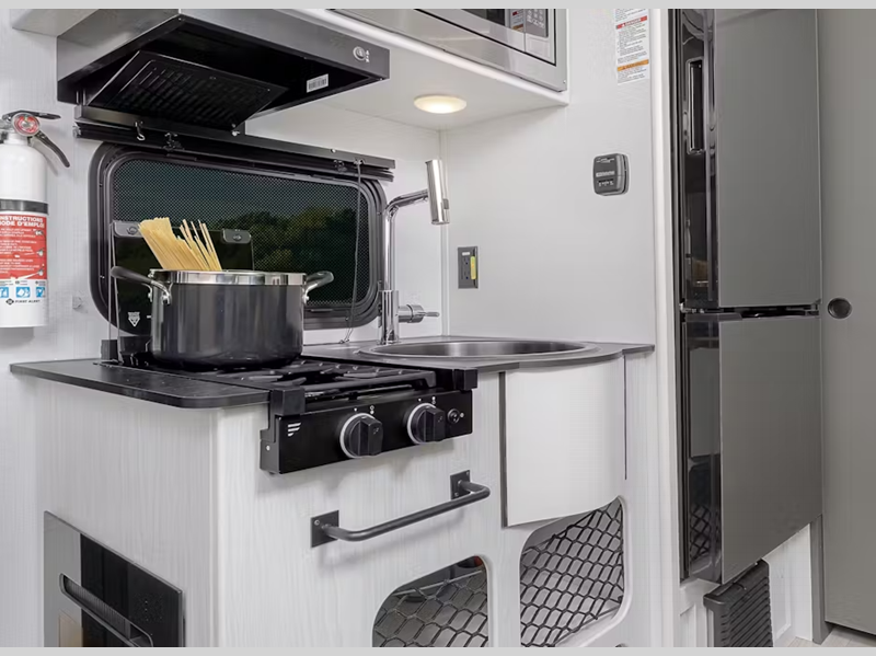Sleeps 3 Length 19 ft 11 in Ext Height 10 ft 5 in Int Height 6 ft 6 in Hitch Weight 375 lbs Dry Weight 3375 lbs Cargo Capacity 1000 lbs Fresh Water Capacity 37 gals Grey Water Capacity 27 gals Black Water Capacity 27 gals Tire Size ST235/75R15D Furnace BTU 20000 btu Available Beds Murphy Refrigerator Type 12V Refrigerator Size 11 cu ft Convection Cooking Yes Cooktop Burners 2 Number of Awnings 1 LP Tank Capacity 40 lbs. Water Heater Type Suburban tankless AC BTU 13500 btu Awning Info 11' Power Axle Count 1 Number of LP Tanks 2 Shower Type Standard Similar Floorplans