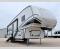 Plan to say awhile in this rear kitchen fifth wheel! You will fall in love with the front bedroom with a king bed slide out, large front closet, a dresser, plus a mounted TV for movies in bed. The rear kitchen includes plenty of space to prep meals, a farm style sink, plus a 10 cu. ft. 12V refrigerator and a pantry for food storage! You can get cozy on the theater seating slide out or at the cafe dinette, and the LED TV will ensure you'll never go bored on rainy days!
